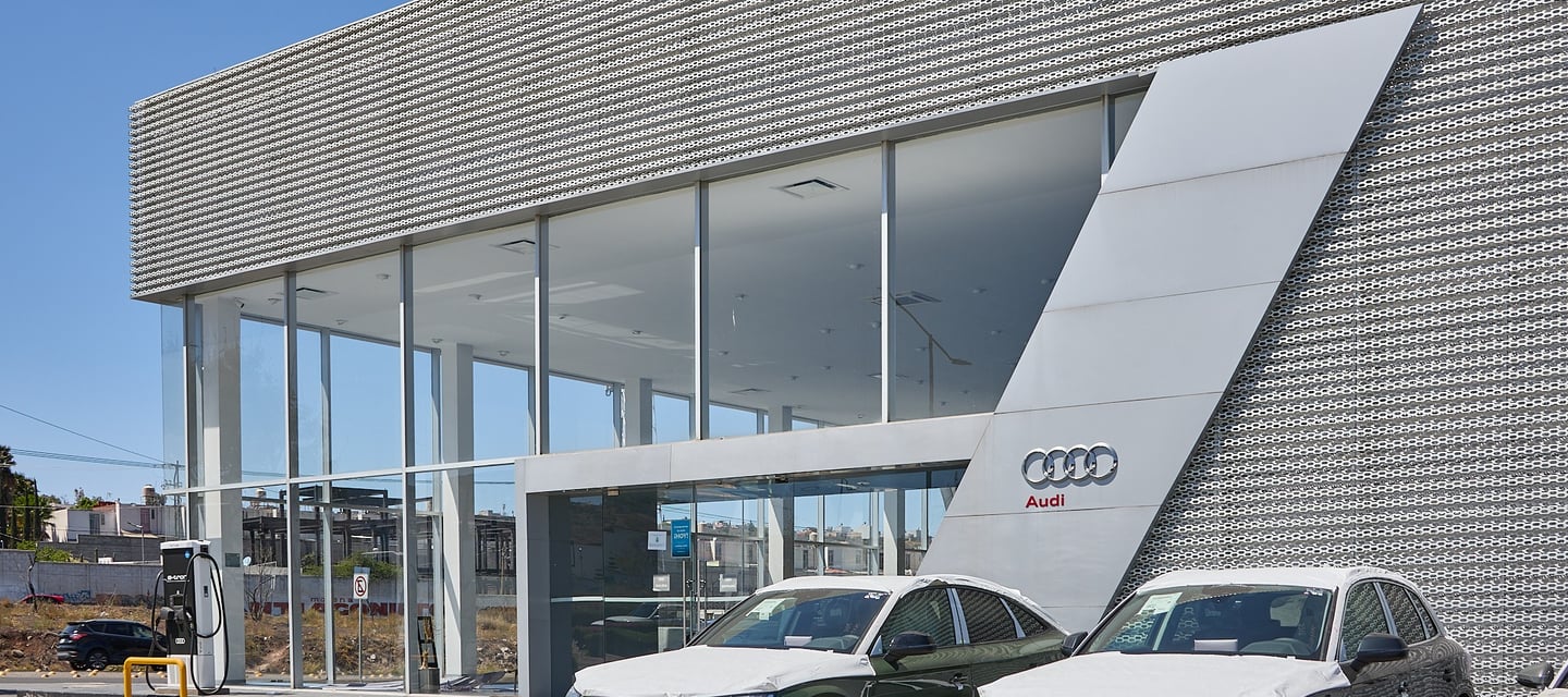 Audi Juriquilla es la agencia de marcas más grande e importante de América Latina. Más de 4.000 m2 de construcción y un diseño espectacular con los detalles emblemáticos de la marca.
